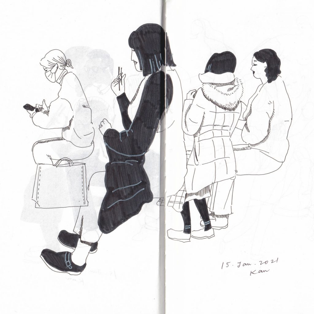 Cafes in Tokyo” Series 「東京の喫茶店」シリーズ , 2021, pen